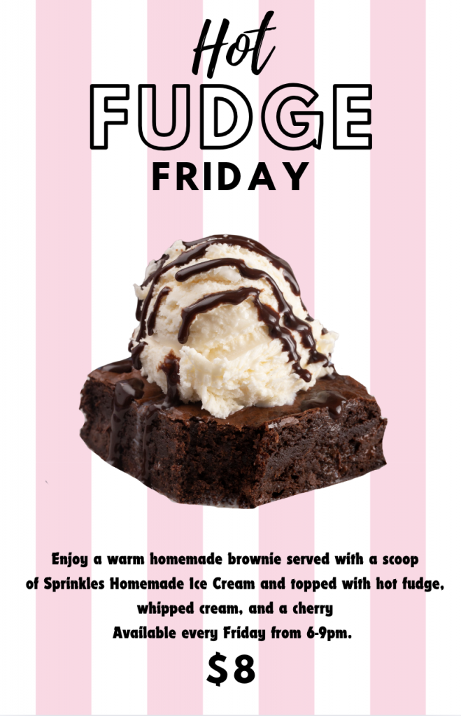 Friday night hot fudge is an old classic, that never gets old! Choose a scoop of one of our unique icecreams to modernize this favorite go-to.