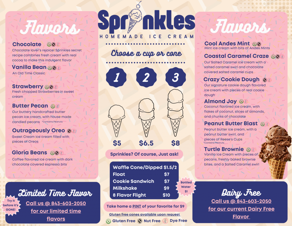 Tiffany and Justin Buckley, owners of Cypress Farms, have had years of experience serving the Lowcountry. Their newest offering to the community is high quality, handmade ice cream! With a passion for flavor exploration and a fun family experience, Sprinkles ice cream will have you saying Life is Better with Sprinkles!